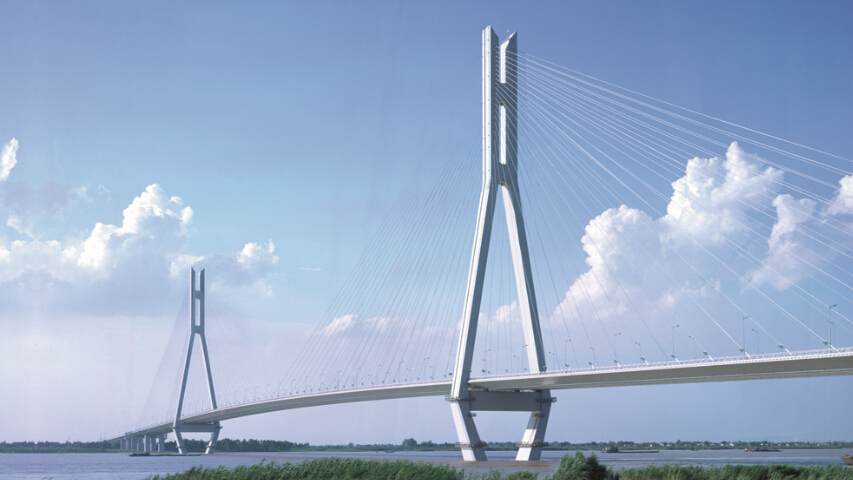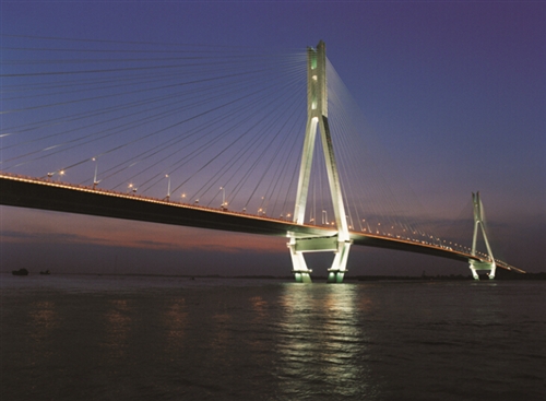 南京长江二桥位于南京长江大桥下游11km处,于2001年3月26日建成通车,是国家“九五”重点建设项目,全长21.3km,采用双向六车道高速公路标准,由南、北汊大桥和南岸、北岸及八卦洲引线组成,南汊大桥为钢箱梁斜拉桥,北汊大桥为钢筋混凝土预应力连续箱梁桥,跨径均为全国领先。